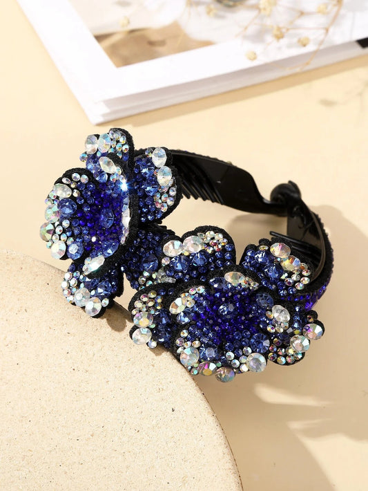 Hårklemme med Blomster & Perler - i Blå & Sølv