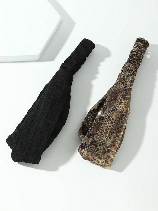 2 Stk Hårbånd med Snoning - Sort & Slangeprint