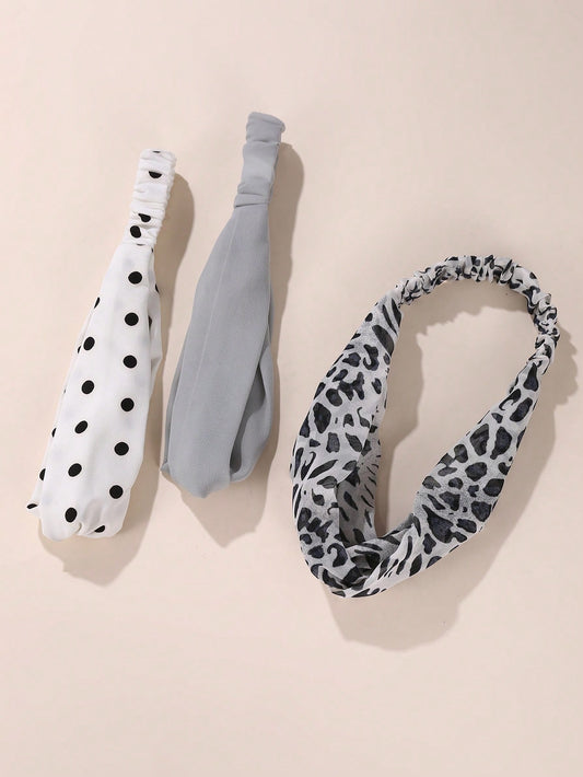 3 Stk Hårbånd med Snoning - med Dyreprint & Prikker