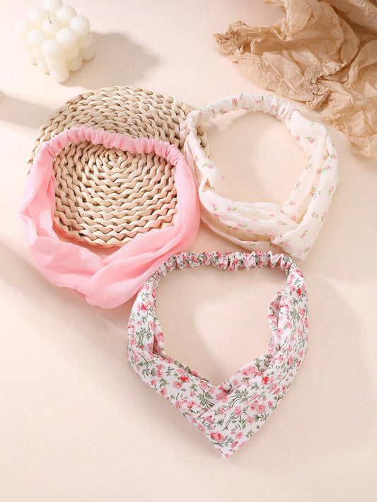 3 Hårbånd med Snoning - Lyserøde Farver & Blomsterprint