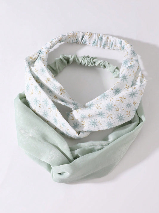 2 Stk Hårbånd med Snoning - i Lysegrøn & Blomsterprint