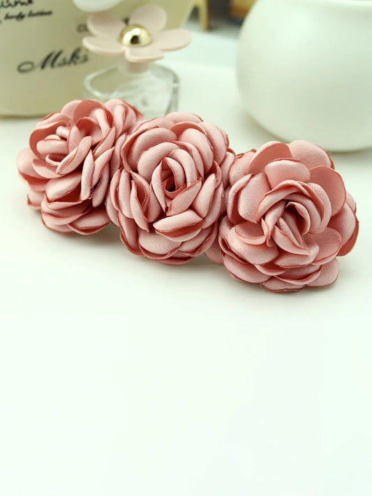 Sæt med Satin-Blomst og Rosa Glitter-Hårspænder