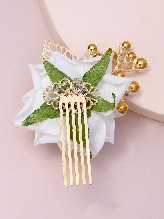 Hårklemme med Cremet-Hvid Blomst & Glitter-Hjerte