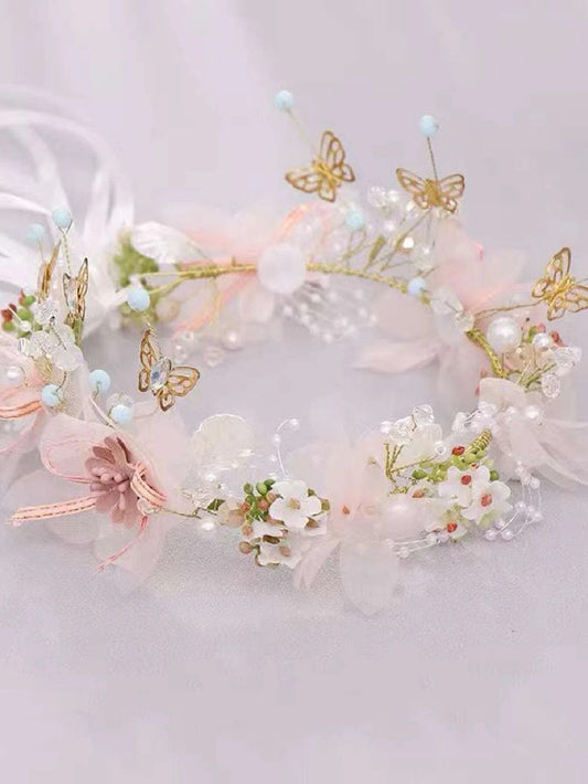 Blomsterkrans med Blomster, Perler & Sommerfugle