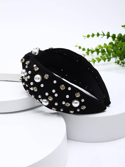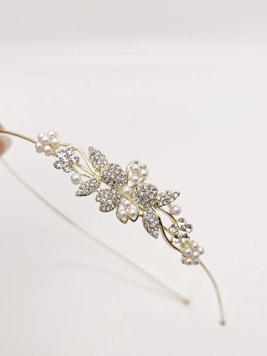 3-Strenget Hårbøjle med Hvide Perler & Krystalperler