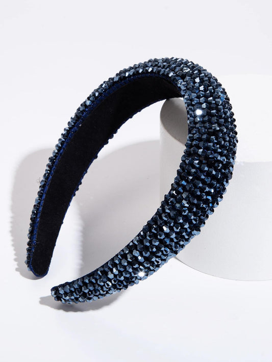Smuk Polstret Hårbøjle med Perlebroderi - i Blå