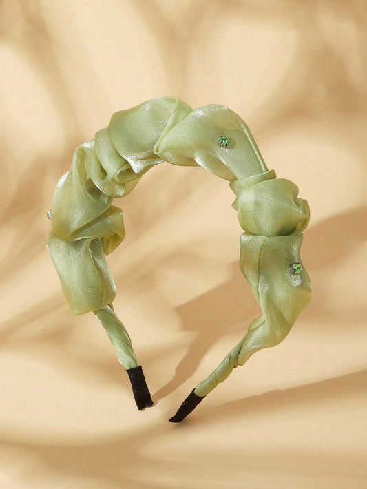 Hårbøjle i Glansfuld Satin & Rynke-Design med Perler - i Lysegrøn