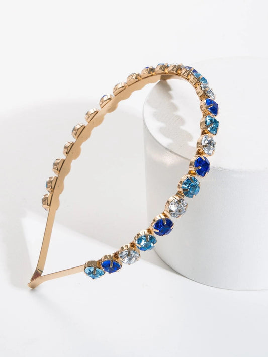 Gylden Hårbøjle med Glansfulde Perler i Blå Farver