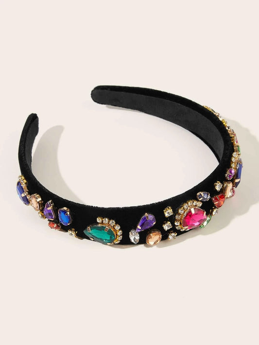 Smuk Polstret Hårbøjle med Perlebroderi - i Sort
