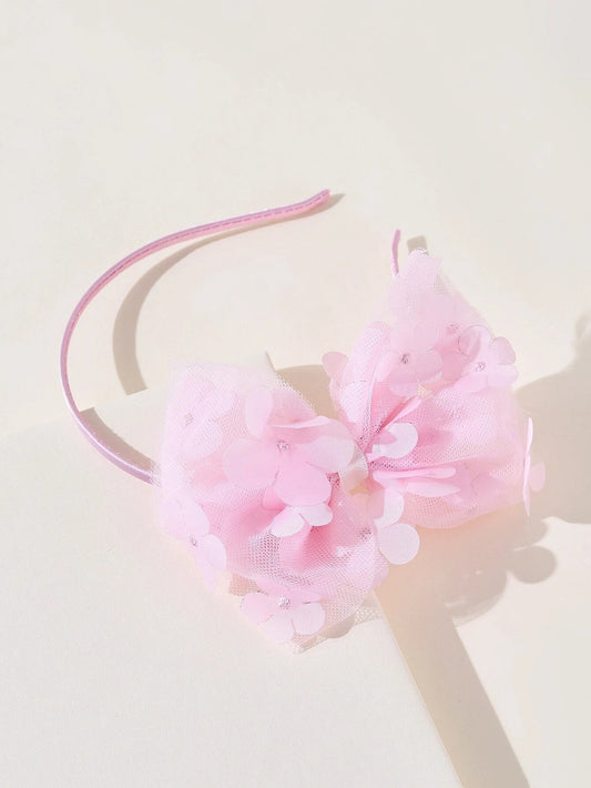 Lyserød Hårbøjle - Stor Sløjfe med Blomster
