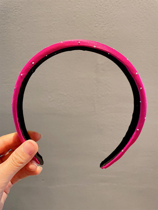 Lyserød Polstret Hårbøjle med Krystalperle Bånd
