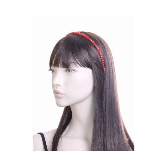 Hårbøjle med Glansfulde Facet-Perler - i Rød