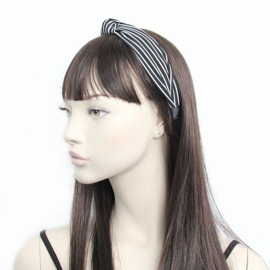 Hårbøjle med Knude - i Sort med Hvide Striber