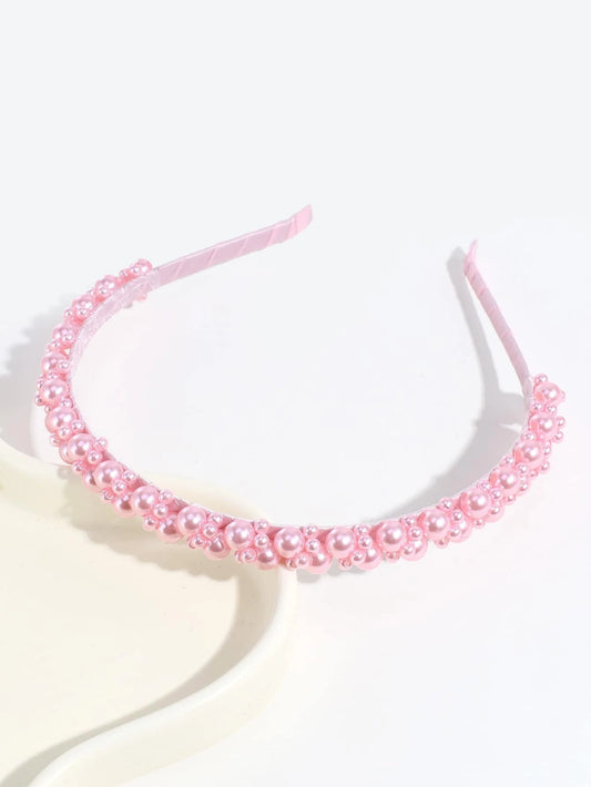 Smuk Polstret Hårbøjle med Perlebroderi - i Hvid