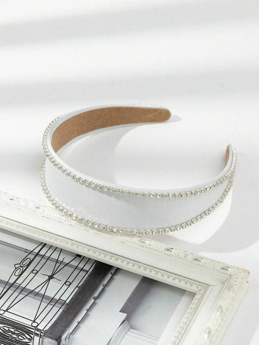 Bred Hvid Satin Hårbøjle med Krystalperler