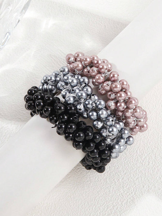 3 HÄrelastikker med Perler - i SÞlv, Sort & Rosa
