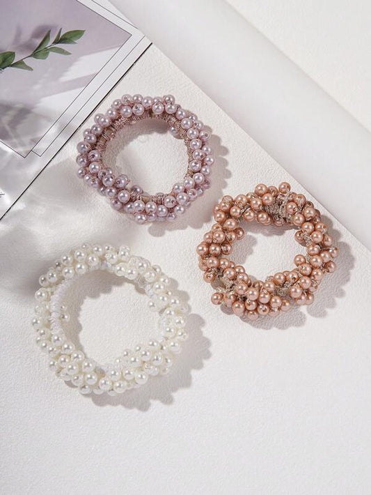3 HÄrelastikker med Perler - i Hvid, Rosa & Gylden