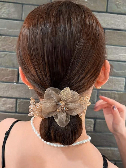Gylden Scrunchie HÄrelastik med Blomst & Perler