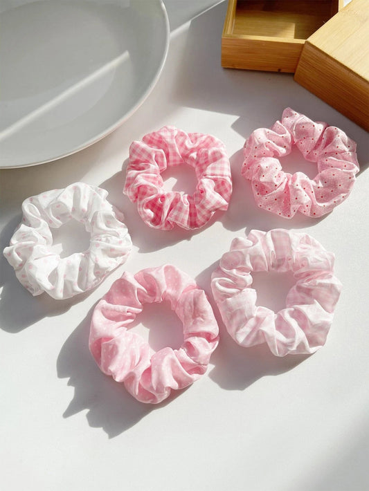 SĂŠt med 5 Scrunchie Elastikker - i LyserĂžd & Hvid