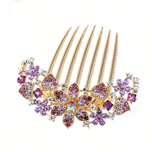 Gylden Kam med Lilla Blomst & Perler