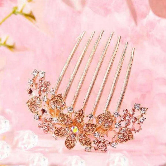 Rosa-Guld Kam med Blomst & Perler