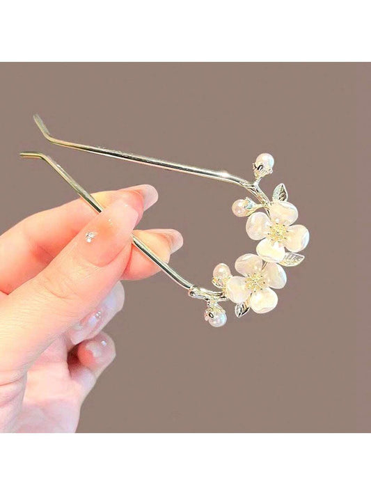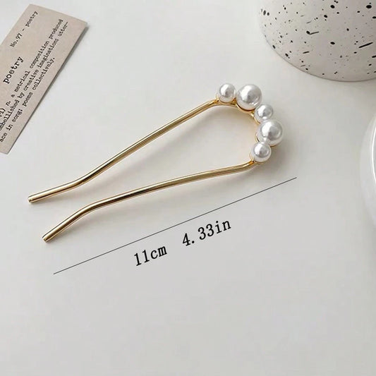 Fransk hårnål - i Guld med Hvide Blomster Perler
