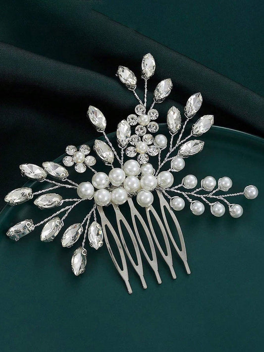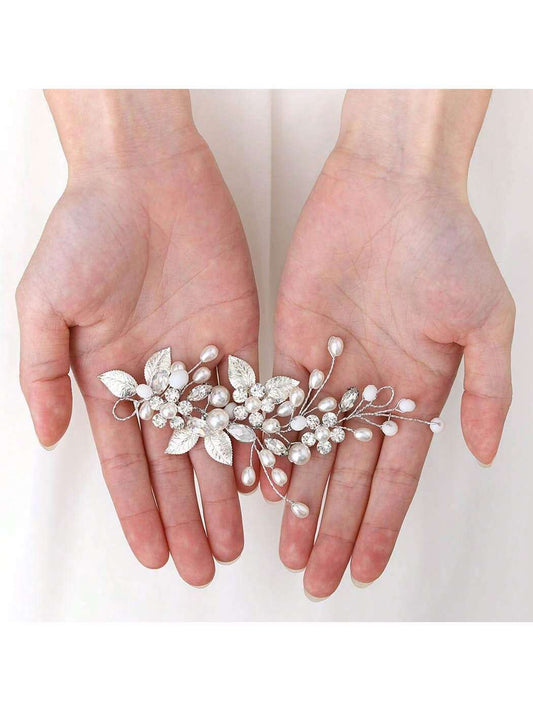 Hårsmykke med Blomster, Sølv Blade & Perler