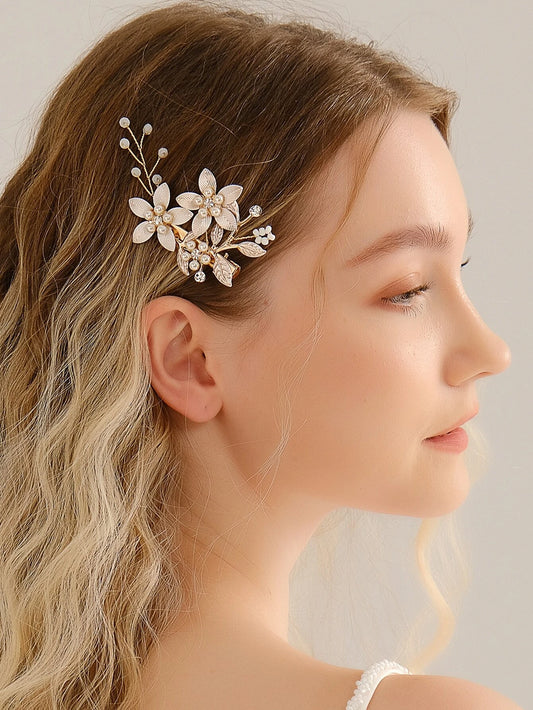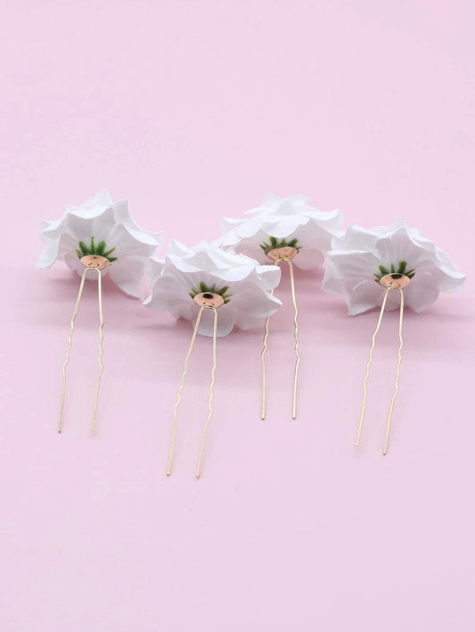 4 Stk Gyldne Hårnåle med Hvide Blomster