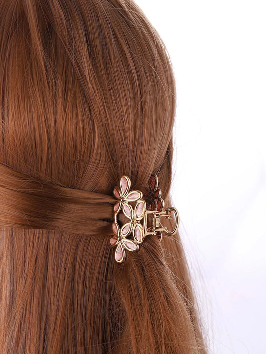 Gylden Hårklemme med Blomster & Perler