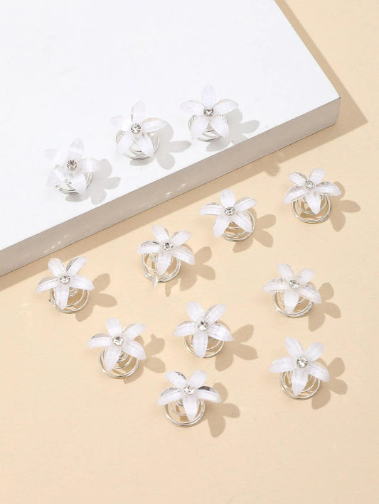12 stk Hårspiraler med Hvide Blomster