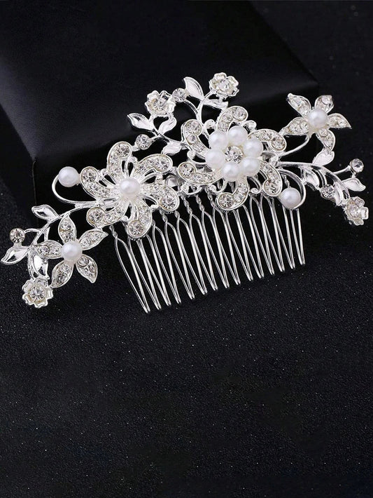 Stort Sølv-Hårsmykke med Blomster & Krystalperler