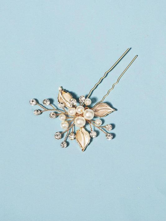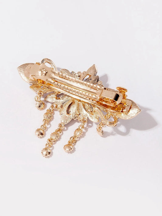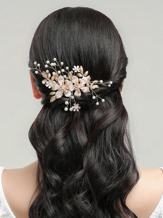 Stort Gyldent Hårsmykke med Blomster & Perler