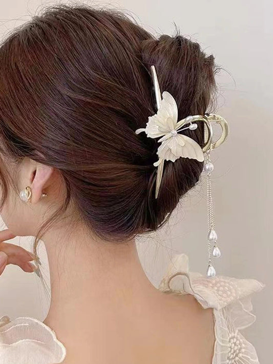 Gylden Hårklemme med Sommerfugl & Vedhæng