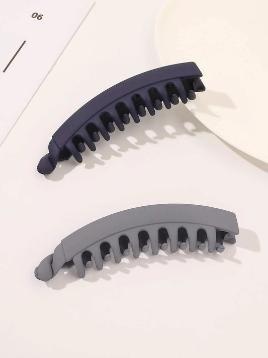 2 Lange Banan Hårklemmer - i Grå & Blå - 13 cm