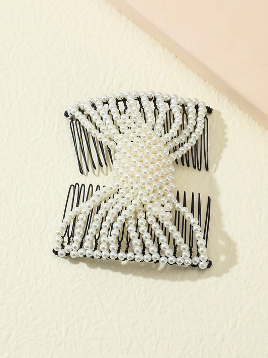 UdsolgtDobbelt Hårkam med Hvide Perler