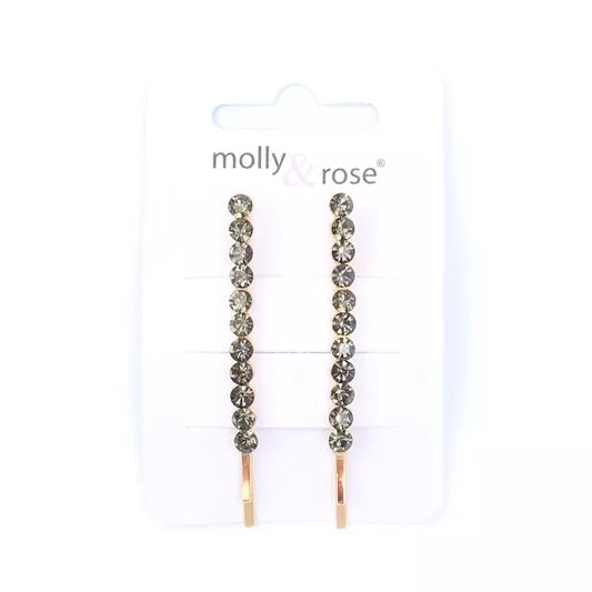 Gyldne Hårspænder med Runde Krystalperler - i Grå