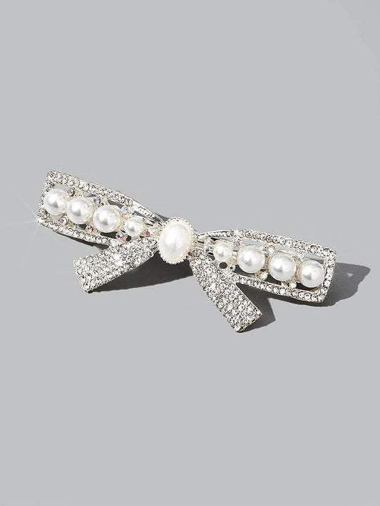 Sølv Patent Hårspænde med Krystalperler & Hvide Perler