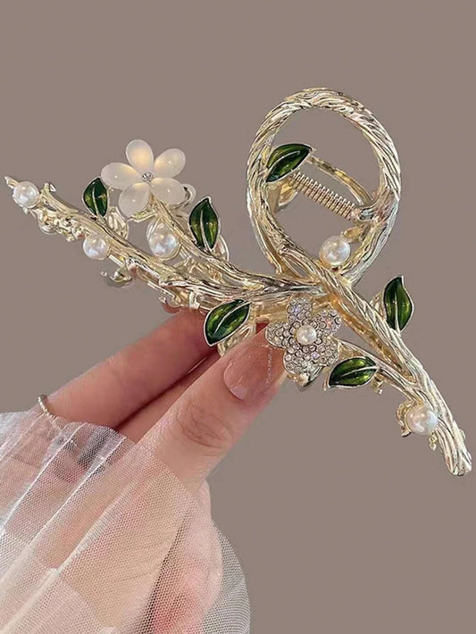 Gylden Metal-Hårklemme med Blomster & Perler