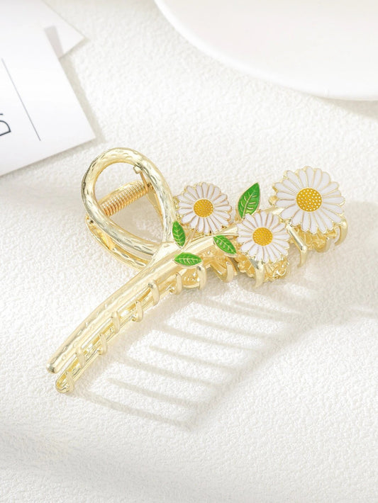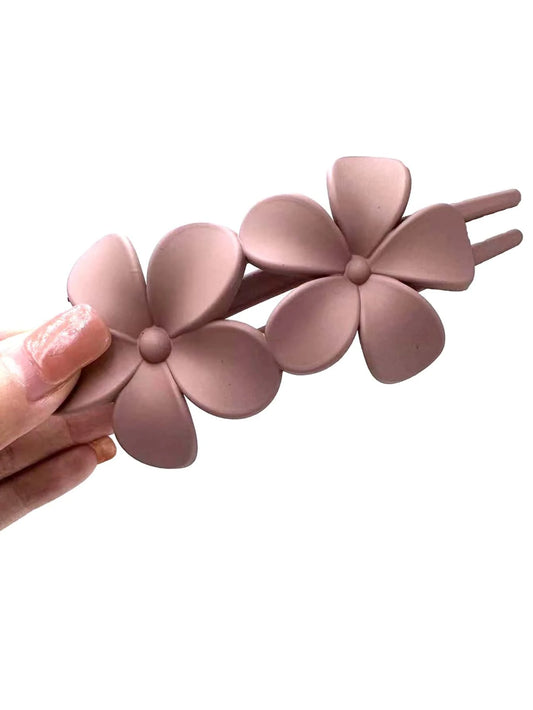 Stor Hårklemme med Blomster - i Støvet Rosa