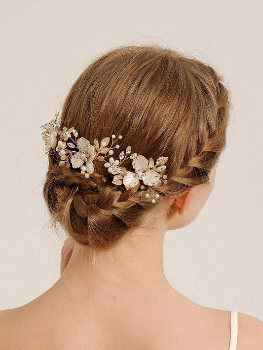 Stort Gyldent Hårsmykke med Blomster & Perler