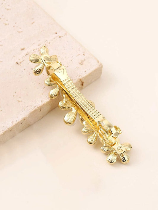 Gyldent Patent Hårspænde med Krystal-Blomst & Hvide Perler