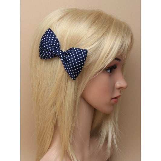 Stor HårSløjfe på Næbklemme - i Marine-Blå med Hvide Prikker