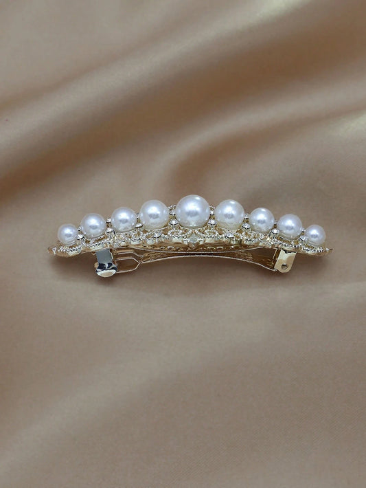 Patent Hårspænde med Hvide Runde Perler