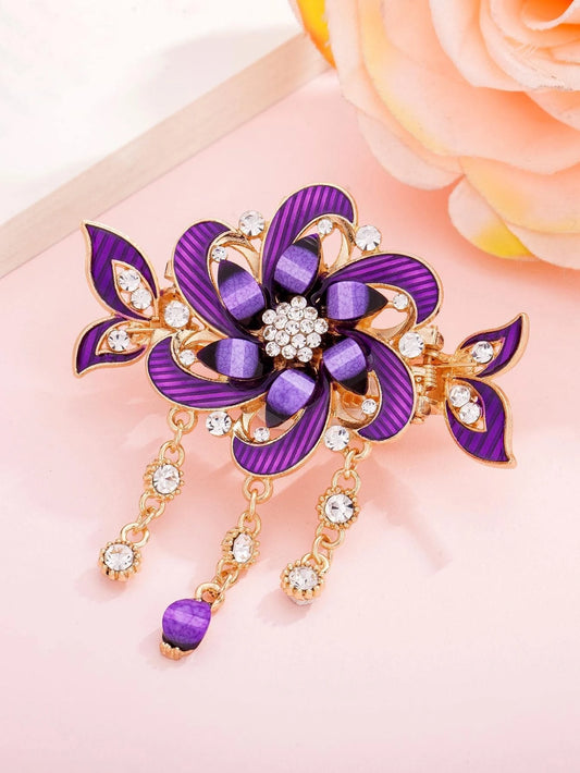 Gyldent Patentspænde med Lilla Blomst & Perler