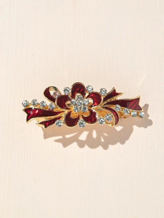 Gyldent Patentspænde med Rød Blomst & Perler