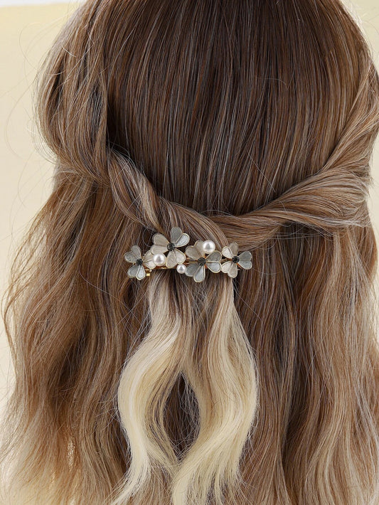 Stort Patentspænde med Blomst & Perler