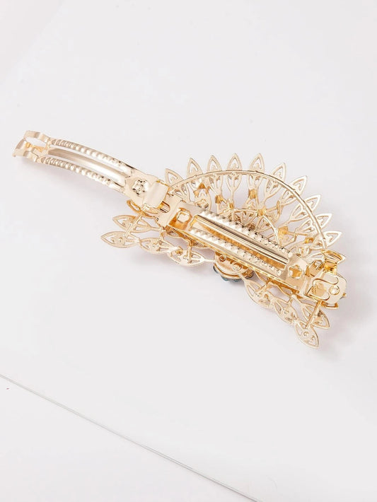 Gyldent Patentspænde med Påfugl & Krystalperler