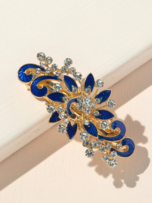 Gyldent Patentspænde med Blå Påfugl & Krystalperler