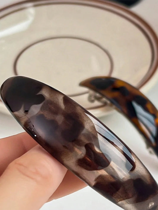 Stort Ovalt Patent Hårspænde - i Brun & Blå