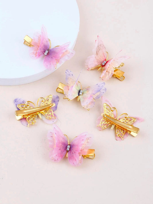 6 Stk Sommerfugle Hårklemmer - i Guld & Fine Farver